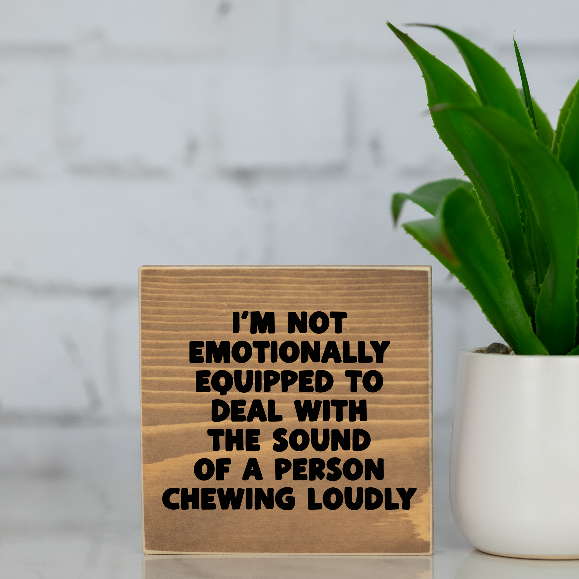 i’m not emotionally equipped to deal with the sound of a person chewing loudly ~ wood sign block (Copy)